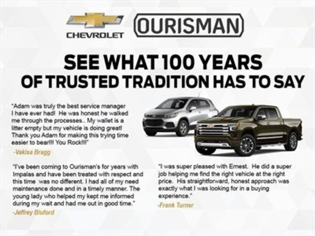 YOU ALWAYS GET YOUR WAY AT OURISMAN EVERYDAY! Over 100 years of trusted tradition - Est. 1921.