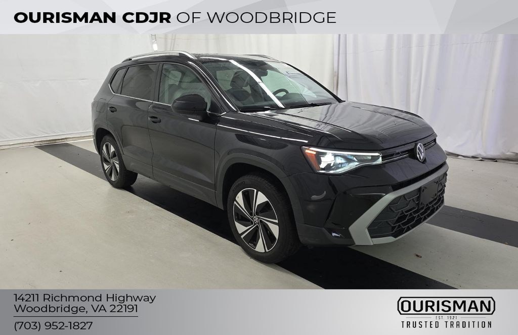 2025 Volkswagen Taos 1.5T SE Pano Roof AWD Clean One Owner POWER MOONROOF / SUNROOF / POWER TILT SLIDING ROOF, BLIS / BLIND SPOT MONITORING, BLIND SPOT DETECTION, DYNAMIC RADAR CRUISE CONTROL / ADAPTIVE CRUISE CONTROL / SMART CRUISE CONTROL, LANE DEPARTURE ALERT / LANE KEEPING ALERT, LANE DEPARTURE WARNING, REARVIEW CAMERA / BACK UP CAMERA / REVERSE CAMERA, REAR VIEW CAMERA WDYNAMIC GUIDELINES, ANDROID AUTO & APPLE CARPLAY, HANDS FREE LIFTGATE / POWER LIFT GATE / AUTOMATIC LIFT GATE, HEATED FRONT SEATS, HEATED STEERING WHEEL, POWER WINDOWS & LOCKS, AWD, ALL WHEEL DRIVE, STEERING WHEEL AUDIO CONTROLS, CRUISE CONTROL, WIRELESS CHARGING, PUSH-BUTTON START, BLUETOOTH, ONE OWNER, DUAL ZONE A/C CONTROLS, BACK UP SENSORS, FRONT AND REAR PARK ASSIST, 4-Wheel Disc Brakes, 6 Speakers, ABS brakes, Air Conditioning, Alloy wheels, AM/FM radio: SiriusXM with 360L, Auto High-beam Headlights, Automatic temperature control, Brake assist, Bumpers: body-color, CloudTex & Cloth Seating Surfaces, Compass, Electronic Stability Control, First Aid Kit, Four wheel independent suspension, Front Bucket Seats, Front Center Armrest, Front dual zone A/C, Front reading lights, Fully automatic headlights, Heated Front Bucket Seats, Heated front seats, Heated steering wheel, Low tire pressure warning, Panic alarm, Panoramic Sunroof Package, Passenger door bin, Power driver seat, Power steering, Power windows, Radio data system, Radio: MIB3 Composition Media AM/FM/HD, Rain sensing wipers, Rear Parking Camera, Rear window defroster, Rear window wiper, Remote keyless entry, Security system, Speed control, Split folding rear seat, Spoiler, Steering wheel mounted audio controls, Traction control, Variably intermittent wipers, Wheels: 18" 2-Tone Machined Alloy. Clean CARFAX. CARFAX One-Owner.